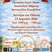 Πασχαλινό Πανηγύρι, Δευτέρα του Πάσχα 13/4/26 στο προαύλιο του Ιερού Ναού Απ. Μάρκου Αρχαγγέλου Στροβόλου