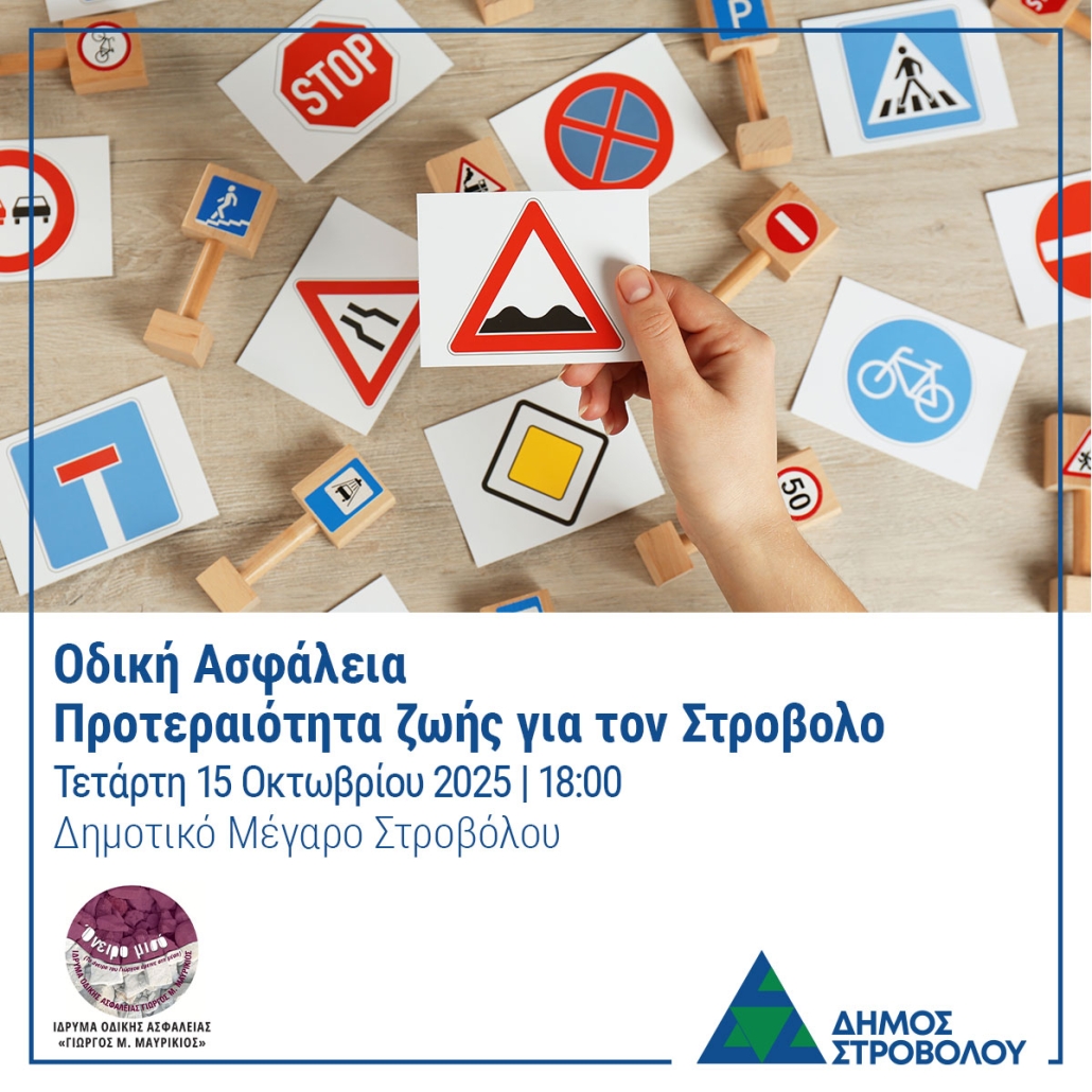 Οι Επιτροπές Εθελοντισμού και Ενεργού Πολίτη και Οδικής Ασφάλειας του Δήμου Στροβόλου σε συνεργασία με το Ίδρυμα Οδικής Ασφάλειας «Γιώργος Μ. Μαυρίκιος» σας προσκαλούν σε εκδήλωση ευαισθητοποίησης για την οδική ασφάλεια, με την ευκαιρία της Ευρωπαϊκής Νύχτας Χωρίς Δυστυχήματα.