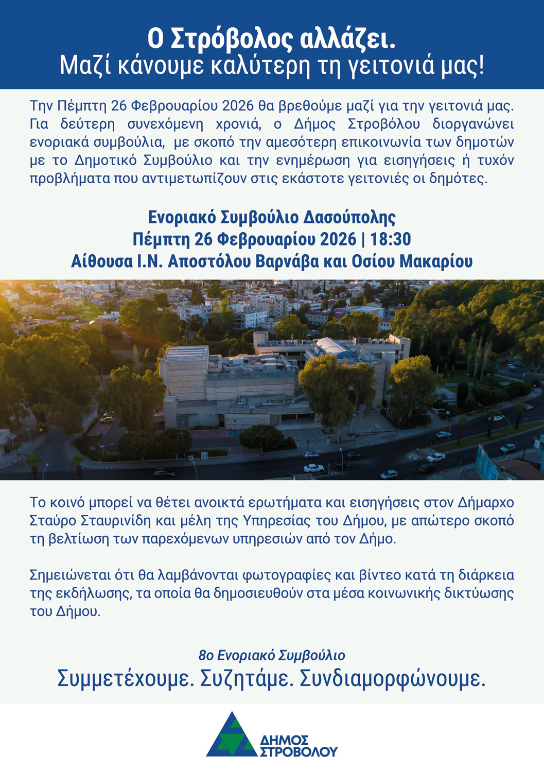 Είσαστε εδώ: Δραστηριότητες Δημάρχου1 / Ενοριακό Συμβούλιο Δασούπολης – Ο Στρόβολος αλλάζει. Μαζί κάνουμε καλύτερη τη γε...