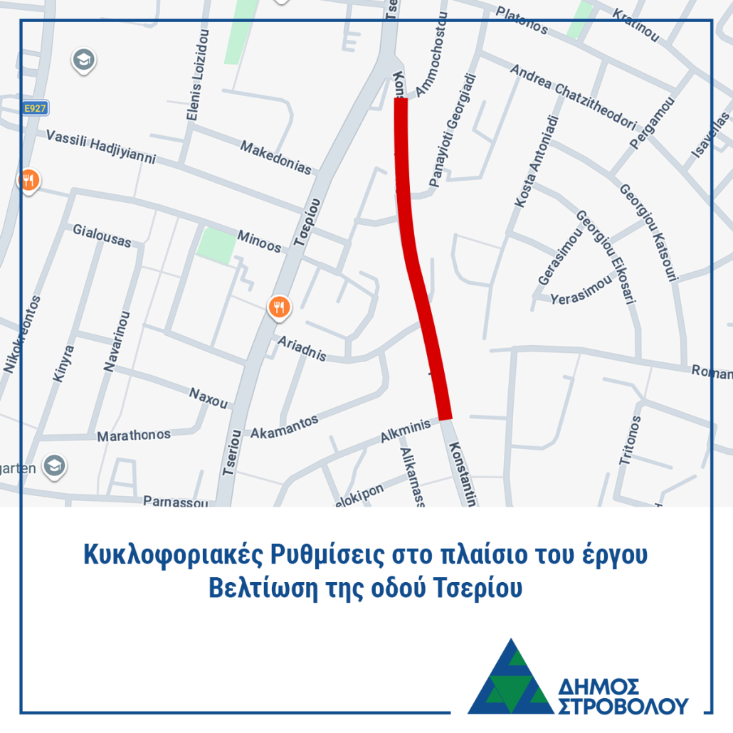 Σχετικά με το έργο της οδού Τσερίου, το κοινό μπορεί να επικοινωνεί στον τηλεφωνικό αριθμό 22470470 ή μέσω ηλεκτρονικού ταχυδρομείου στο tseriou@strovolos.org.cy