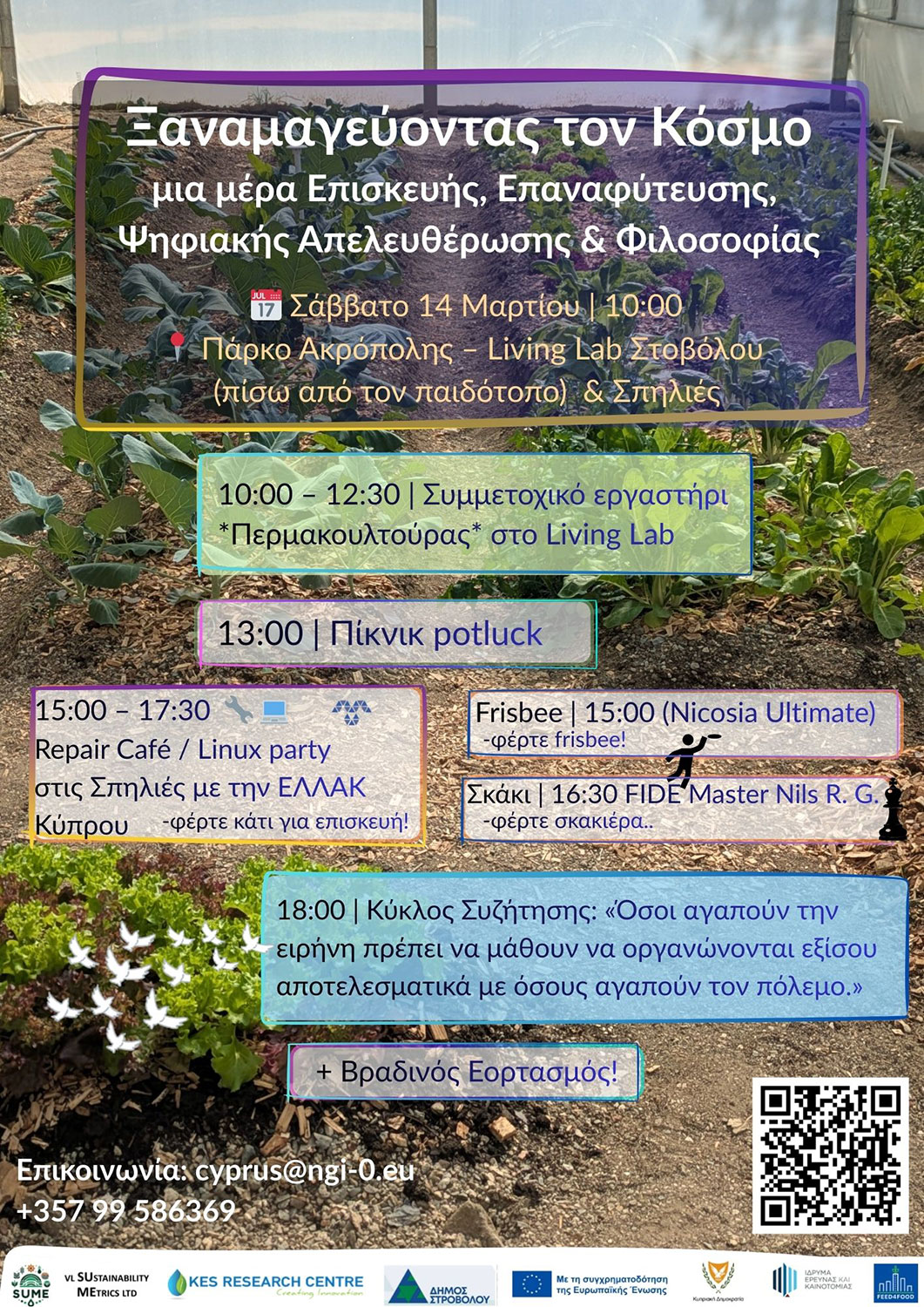 Στα πλαίσια των δράσεων του προγράμματος Feed4Food διοργανώνεται από την εθελοντική κοινότητα ΕΛΛΑΚ Κύπρος το Σάββατο 14 Μαρτίου στον χώρο του δημοτικού λαχανόκηπου και στο χώρο των σπηλιών του πάρκου Ακρόπολης, ημερίδα που αφορά την προώθηση εθελοντικών δράσεων και των δράσεων του δημοτικού λαχανόκηπου.