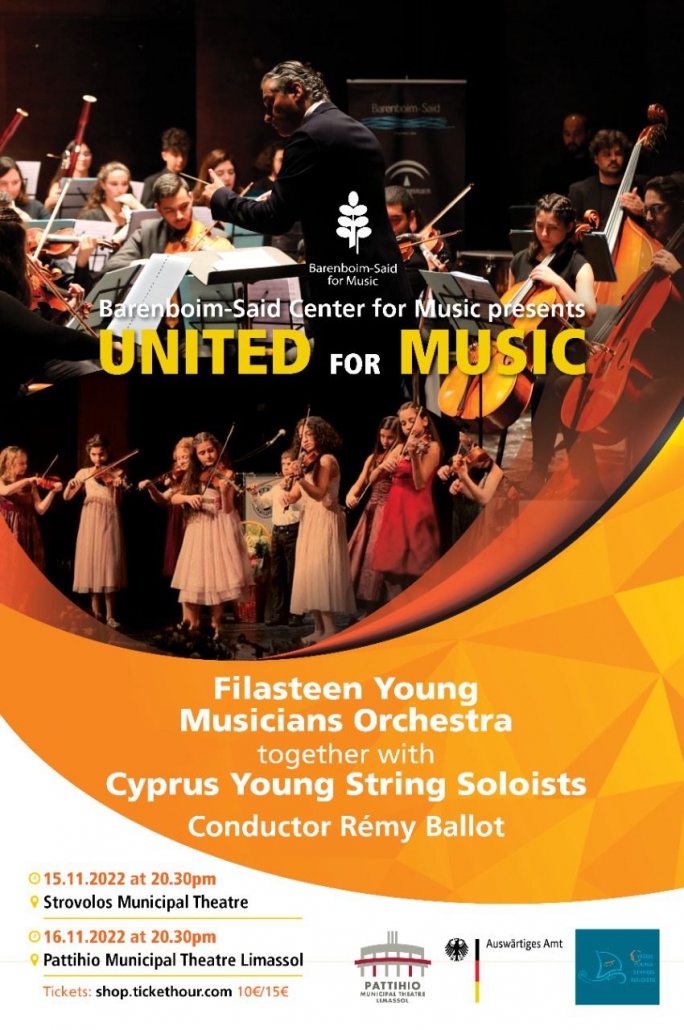 Το Κέντρο Μουσικής Barenboim-Said ανακοινώνει την πρώτη διεθνή συναυλιακή περιοδεία μετά την πανδημία με τη ναυαρχίδα του, το σύνολο της Filasteen Young Musicians Orchestra. Το σύνολο ενώνεται με τους Cyprus Young Strings Soloists και έρχεται στο Δημοτικό Θέατρο Στροβόλου με ένα κονσέρτο στις 15/11/2022 και ώρα 20:30 υπό τη διεύθυνση του μαέστρου Rémy Ballot Conductor.
