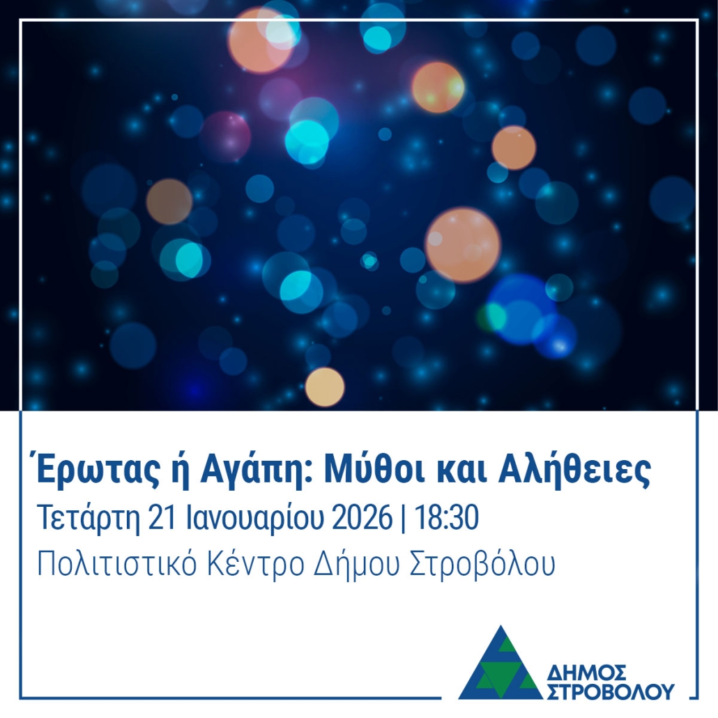 Ο Δήμος Στροβόλου σας προσκαλεί σε ανοικτή παρουσίαση- συζήτηση με θέμα: «Έρωτας ή Αγάπη: Μύθοι και αλήθειες».