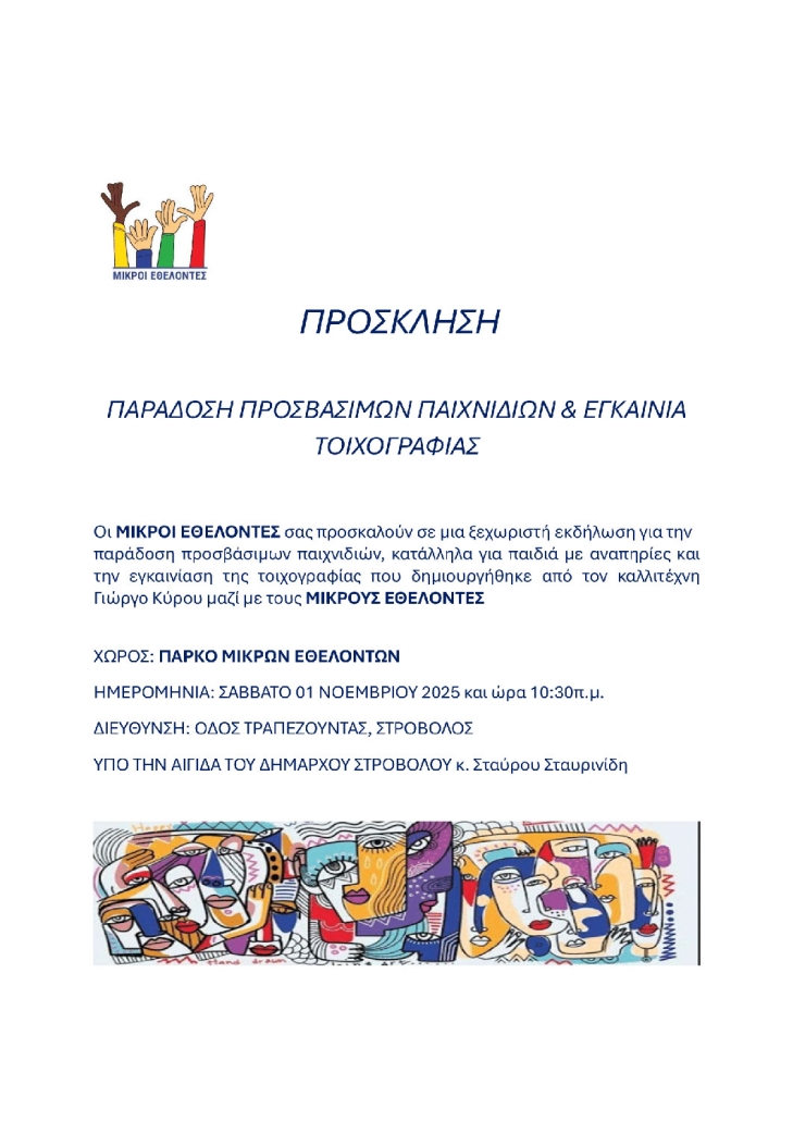 Πρόσκληση: Παράδοση προσβάσιμων παιχνιδιών & εγκαίνια τοιχογραφίας, 1/11/25
