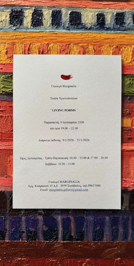 Πρόσκληση στα εγκαίνια ατομικής έκθεσης της Σοφία Χριστοδούλου