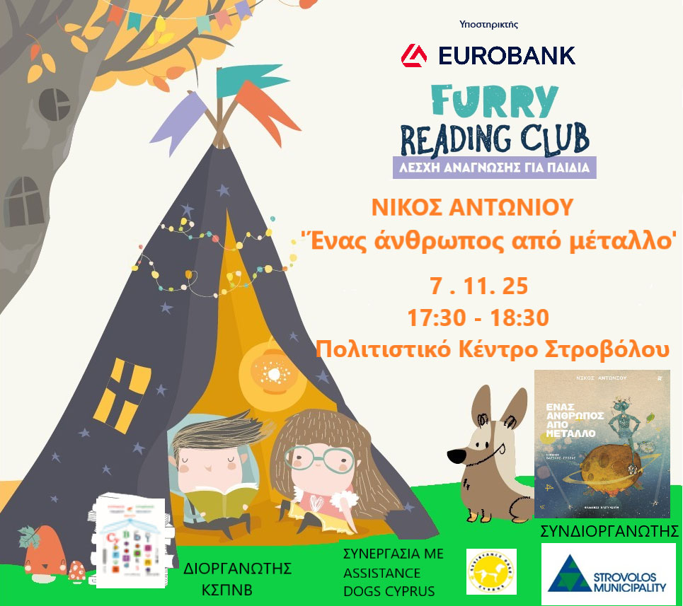 Το επιτυχημένο πρόγραμμα «Furry Book Club – Reading Dogs», για παιδιά και εφήβους, συνεχίζεται και τον Νοέμβριο στη Δημοτική Βιβλιοθήκη Στροβόλου, με δωρεάν συμμετοχή. Απαραίτητη η εκ των προτέρων δήλωση συμμετοχής, λόγω περιορισμένου αριθμού θέσεων.