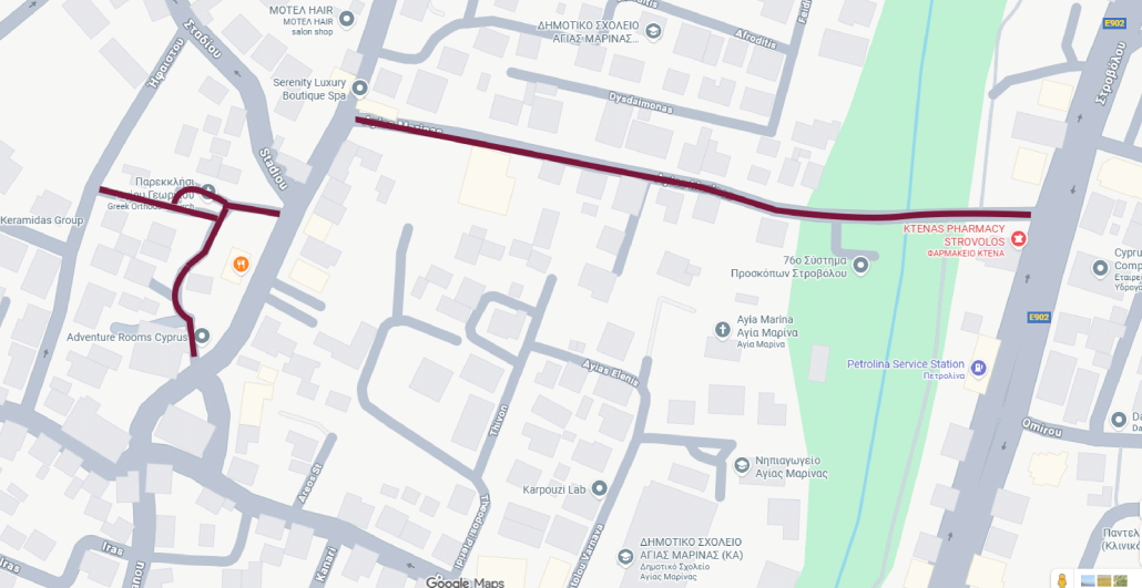 - η κυκλοφορία των οχημάτων στην οδό Αγίας Μαρίνας θα επιτρέπεται μόνο για τους κατοίκους και τους επισκέπτες των επιχειρήσεων της οδού, η οποία θα λειτουργεί ως αδιέξοδο με τμηματική αποκοπή του δρόμου, κατά την εκτέλεση εργασιών εγκατάστασης νέου δικτύου αποχέτευσης. Οι εργασίες αναμένεται να διαρκέσουν τρεις μήνες.