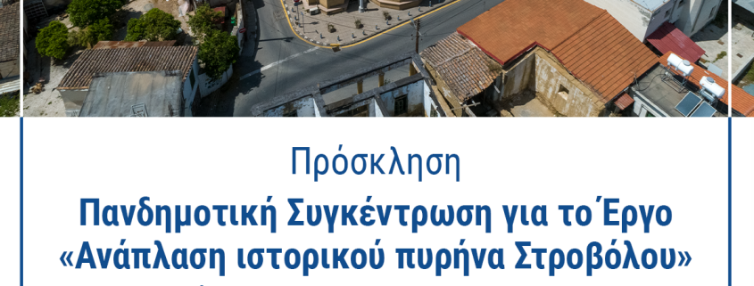 Πρόσκληση σε Πανδημοτική Συγκέντρωση για το Έργο «Ανάπλαση ιστορικού πυρήνα Στροβόλου»